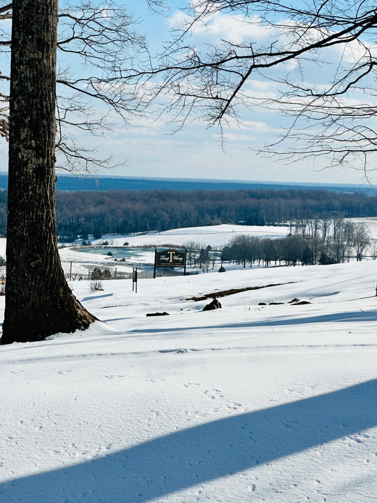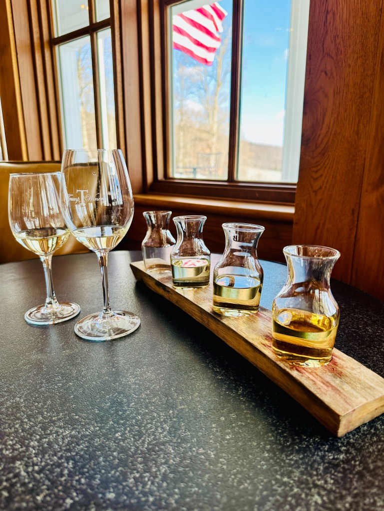 Our final stop was Trump Winery, about 20 minutes outside of Charlottesville. Leaving politics aside, the property is stunning, especially with acres of untouched snow blanketing the grounds. We shared a wine tasting flight and some delicious snacks—hummus with flatbread and pimento cheese with toast—and even found a wine we both loved (a rare occurrence!).